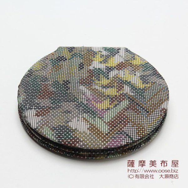 大島紬 丸立て鏡 027 和柄コンパクトミラー [WMT−011]